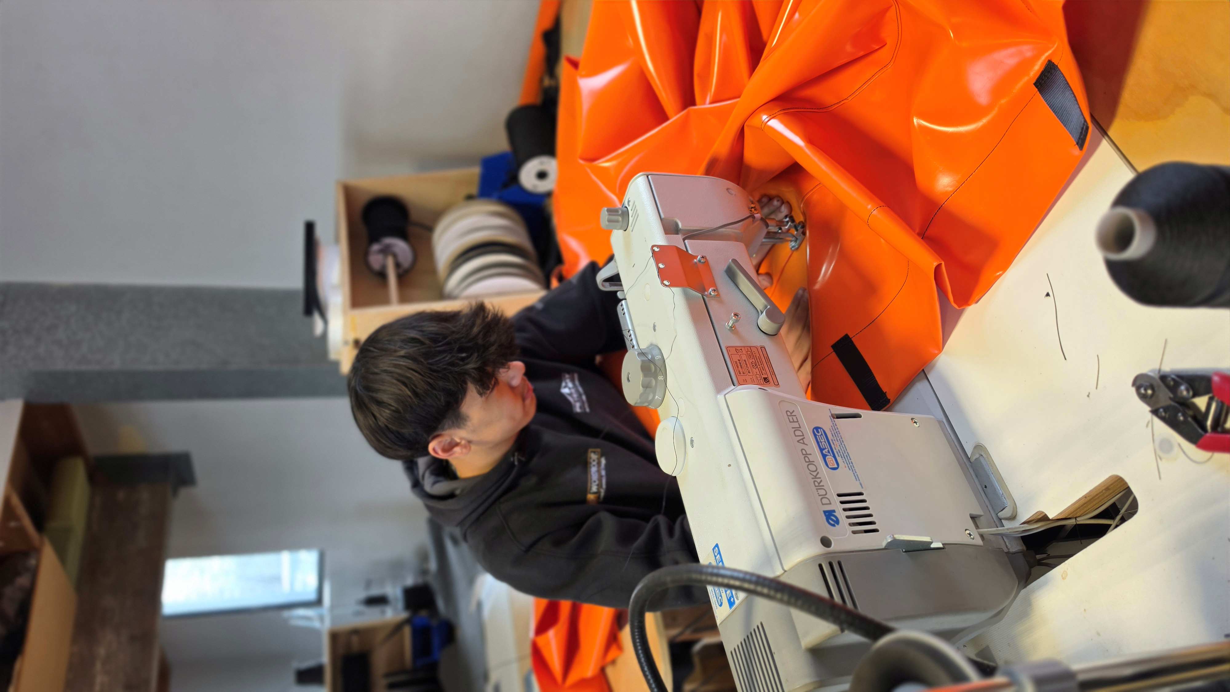 What appealed to Luke about Peter May Ltd was the flexibility, the training opportunities, and the variety of work. Since starting, he has been learning to use a wide range of equipment and machinery including a CNC cutting table, hot air welders, eyelet machines, and even metal welding when needed.